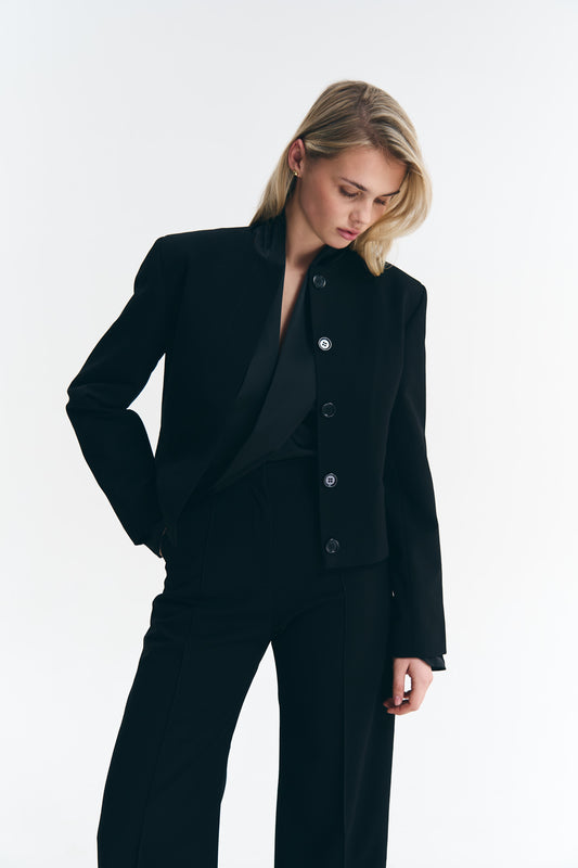 Укорочений чорний жакет