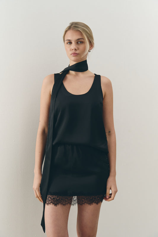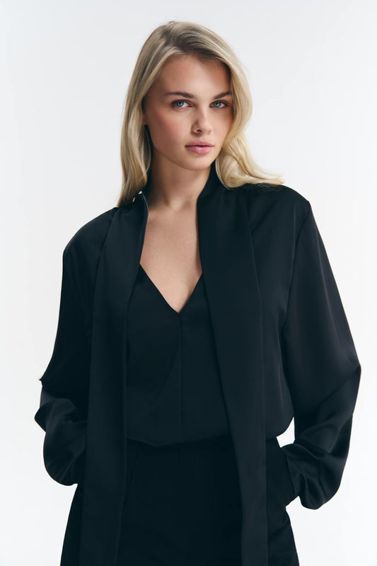Блуза сатинова чорна з шарфом