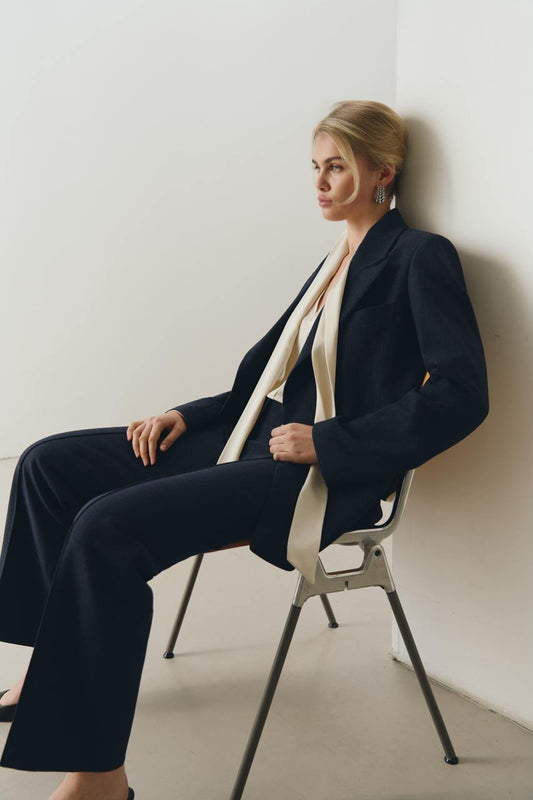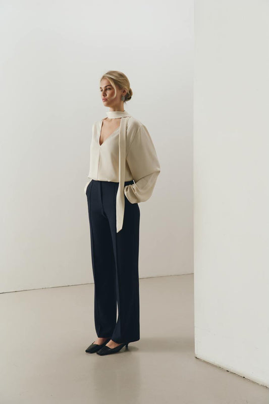 Блуза сатинова молочна з шарфом